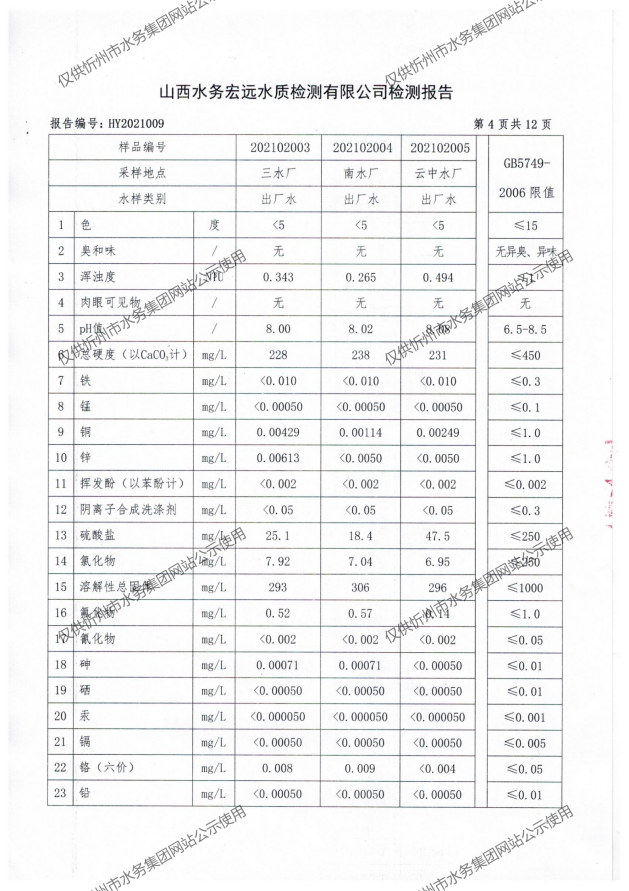 忻州城區(qū)公共供水水源水、出廠水、管網(wǎng)水、管網(wǎng)末梢水2021年2月份水質(zhì)信息公示